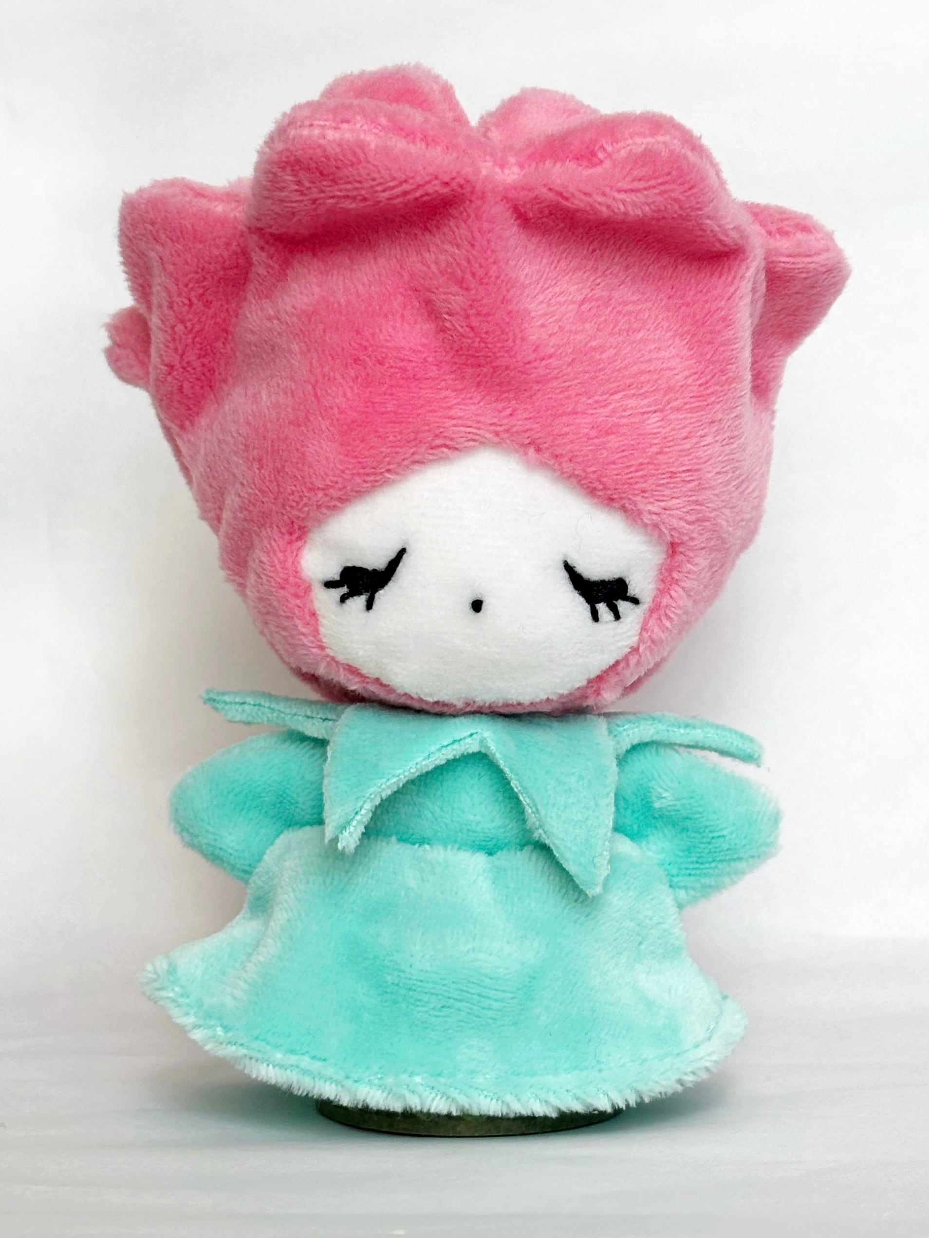 ばらの花を模したハンドメイドのぬいぐるみです。